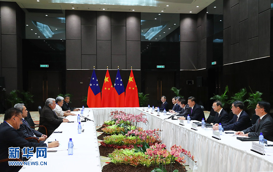 在會見薩摩亞總理圖伊拉埃帕時,習近平指出,當前中薩關系面臨新的發(fā)展機遇。雙方要秉持高度政治互信,繼續(xù)在涉及彼此核心利益和重大關切問題上相互支持,在“一帶一路”框架內(nèi)拓展各領域合作,擴大人文交流。中方支持薩摩亞舉辦2019年太平洋運動會,將繼續(xù)支持薩方提高應對氣候變化能力。