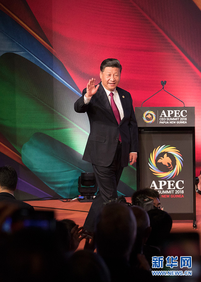 11月17日,國家主席習(xí)近平應(yīng)邀出席在巴布亞新幾內(nèi)亞莫爾茲比港舉行的亞太經(jīng)合組織工商領(lǐng)導(dǎo)人峰會并發(fā)表題為《同舟共濟創(chuàng)造美好未來》的主旨演講。 新華社記者 鞠鵬 攝