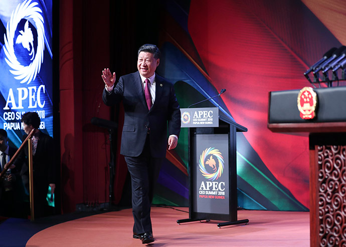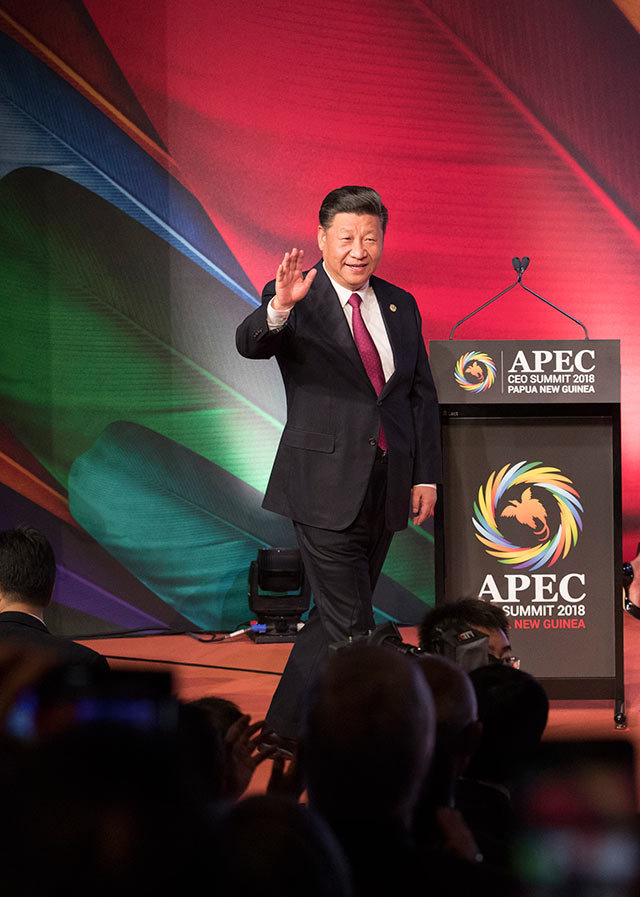 11月17日,國家主席習近平應邀出席在巴布亞新幾內(nèi)亞莫爾茲比港舉行的亞太經(jīng)合組織工商領導人峰會并發(fā)表題為《同舟共濟創(chuàng)造美好未來》的主旨演講。新華社記者 鞠鵬 攝