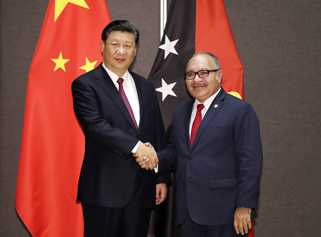 這一次,聽聞習主席來到莫爾茲比港,密克羅尼西亞聯(lián)邦總統(tǒng)、薩摩亞總理、瓦努阿圖總理、庫克群島總理、湯加首相、紐??偫淼冉ń惶窖髰u國領導人以及斐濟政府代表、國防部長專程趕來。