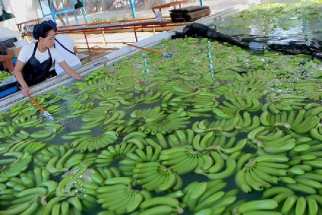 10月30日,一名工人在菲律賓棉蘭老島北達(dá)沃省的香蕉種植園清洗香蕉。新華社發(fā)(烏馬利攝)