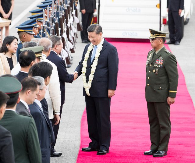 11月20日,國家主席習(xí)近平抵達(dá)馬尼拉,開始對(duì)菲律賓共和國進(jìn)行國事訪問。這是習(xí)近平在機(jī)場受到菲律賓政府高級(jí)官員熱情迎接。新華社記者黃敬文攝