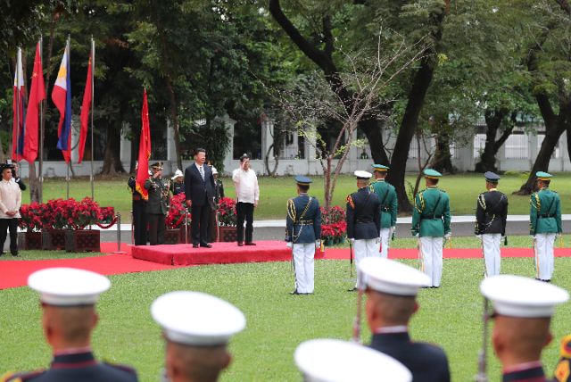 11月20日,國家主席習(xí)近平在馬尼拉同菲律賓總統(tǒng)杜特爾特舉行會(huì)談。會(huì)談開始前,習(xí)近平出席杜特爾特在總統(tǒng)府前草坪舉行的隆重歡迎儀式。新華社記者丁林?jǐn)z