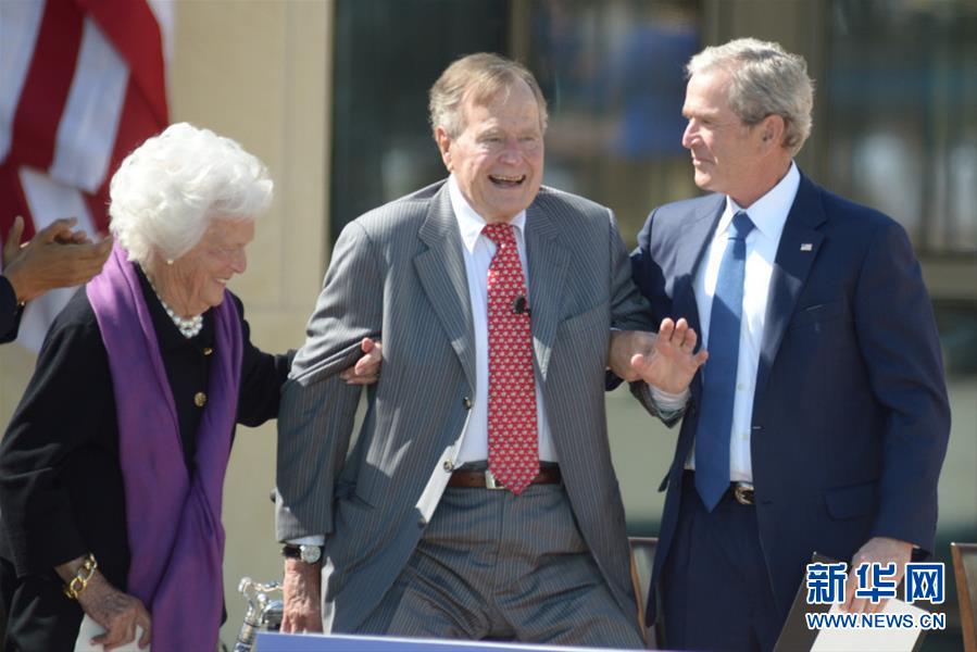 美國(guó)前總統(tǒng)喬治·赫伯特·沃克·布什辦公室11月30日晚發(fā)表聲明證實(shí)他于美國(guó)中部時(shí)間當(dāng)晚10時(shí)許去世,享年94歲。這是2013年4月25日,在美國(guó)達(dá)拉斯,美國(guó)前總統(tǒng)喬治·赫伯特·沃克·布什(中)出席小布什總統(tǒng)圖書(shū)館落成典禮的資料照片。新華社發(fā)(許迅攝)
