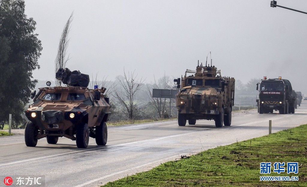 當(dāng)?shù)貢r(shí)間2018年12月24日,土耳其哈塔伊,土耳其裝甲車被派往敘利亞邊境的基利斯地區(qū),增援邊境部隊(duì)。(圖片來源:東方IC)