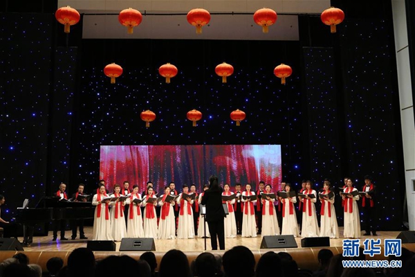 1月23日,在白俄羅斯首都明斯克,中國中央歌劇院的藝術家們在“歡樂春節(jié)”歌舞晚會上演唱。新華社記者 魏忠杰 攝