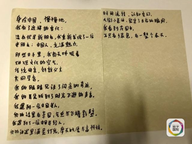 喬瓦尼寫的中文詩。新華社記者李潔攝