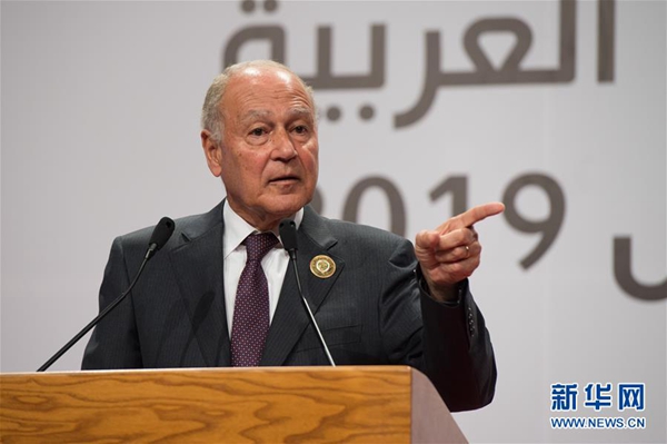3月31日,在突尼斯首都突尼斯市,阿拉伯國家聯(lián)盟秘書長蓋特在記者招待會上講話。新華社記者 孟濤 攝