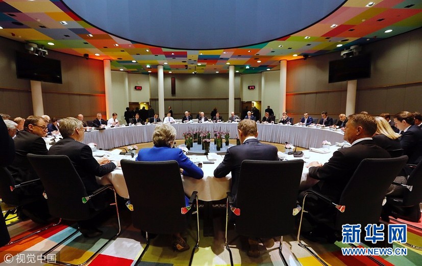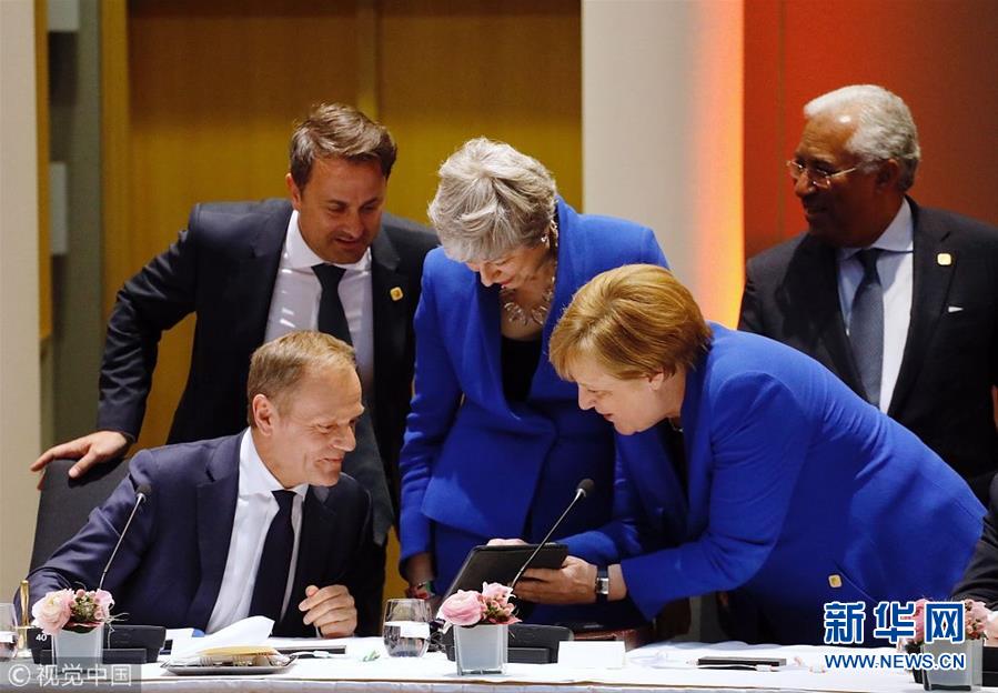 當(dāng)?shù)貢r(shí)間2019年4月10日,比利時(shí)布魯塞爾,歐盟領(lǐng)導(dǎo)人會(huì)議召開,討論英國“脫歐”議題。據(jù)路透社消息,歐盟各成員國達(dá)成一致,允許英國延期“脫歐”至10月底,6月份歐盟還將對此決定再次評估。歐洲理事會(huì)主席圖斯克表示,歐盟各成員國達(dá)成一致,允許英國延期“脫歐”,現(xiàn)在他將與英國首相特雷莎·梅舉行會(huì)談,確定英國是否接受這一提議。(圖片來源:視覺中國)