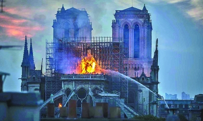 當(dāng)?shù)貢r(shí)間15日傍晚,位于巴黎塞納河西岱島上擁有800多年歷史,在全世界享有盛名的巴黎圣母院遭遇火災(zāi),大火一直燃燒至16日凌晨火勢(shì)才得到有效的控制,明火基本被撲滅。經(jīng)過(guò)500余名消防員的奮力撲救,巴黎圣母院的兩個(gè)鐘樓和正面建筑得到挽救,但三分之二的屋頂已被大火損毀,特別是標(biāo)志性的塔尖已經(jīng)倒塌。
