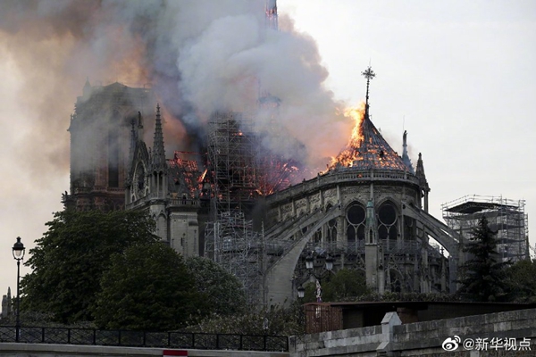 初步調(diào)查顯示巴黎圣母院起火點(diǎn)可能位于塔尖下方