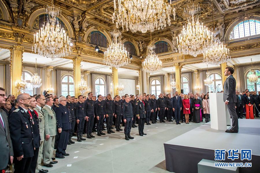 馬克龍接見(jiàn)參與巴黎圣母院救火任務(wù)消防員