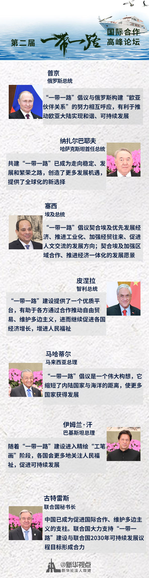 今天,來自世界各地的朋友再次聚首。習主席同各方來賓一起,登高望遠,攜手前行——
