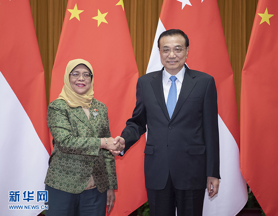 李克強(qiáng)會(huì)見新加坡總統(tǒng)哈莉瑪