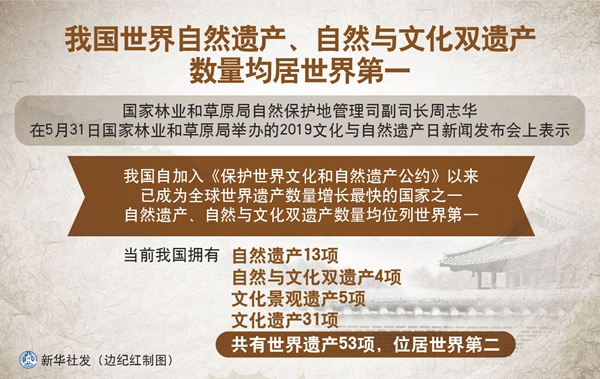 新華社北京5月31日電(記者胡璐)國家林業(yè)和草原局自然保護(hù)地管理司副司長周志華31日說,我國自加入《保護(hù)世界文化和自然遺產(chǎn)公約》以來,已成為全球世界遺產(chǎn)數(shù)量增長最快的國家之一,自然遺產(chǎn)、自然與文化雙遺產(chǎn)數(shù)量均位列世界第一。