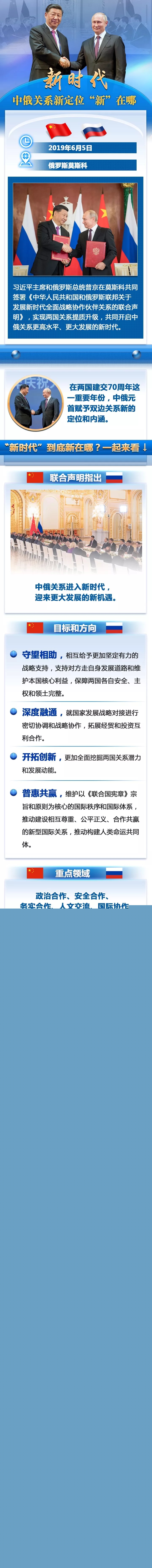 6月5日,習近平主席和俄羅斯總統(tǒng)普京在莫斯科共同簽署《中華人民共和國和俄羅斯聯(lián)邦關于發(fā)展新時代全面戰(zhàn)略協(xié)作伙伴關系的聯(lián)合聲明》,實現(xiàn)兩國關系提質(zhì)升級,共同開啟中俄關系更高水平、更大發(fā)展的新時代。