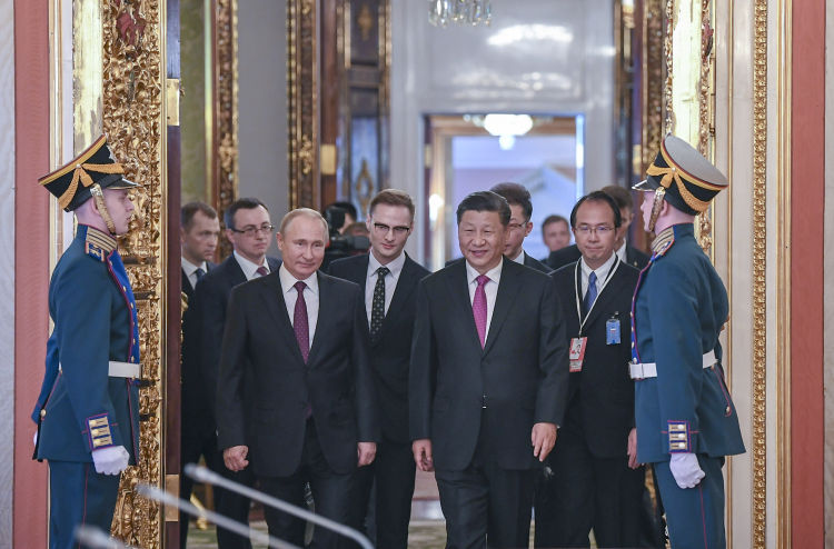 6月5日,國(guó)家主席習(xí)近平在莫斯科克里姆林宮同俄羅斯總統(tǒng)普京會(huì)談。這是兩國(guó)元首步入會(huì)場(chǎng)。新華社記者謝環(huán)馳攝