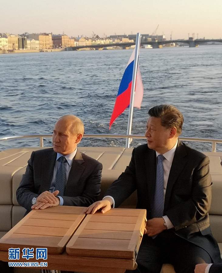 6月6日,國家主席習(xí)近平在圣彼得堡同俄羅斯總統(tǒng)普京再次舉行會(huì)晤。普京邀請習(xí)近平共同乘船游覽涅瓦河。普京歡迎習(xí)近平再次到訪他的家鄉(xiāng),并向習(xí)近平介紹圣彼得堡的風(fēng)土人情和沿途建筑。 新華社發(fā)