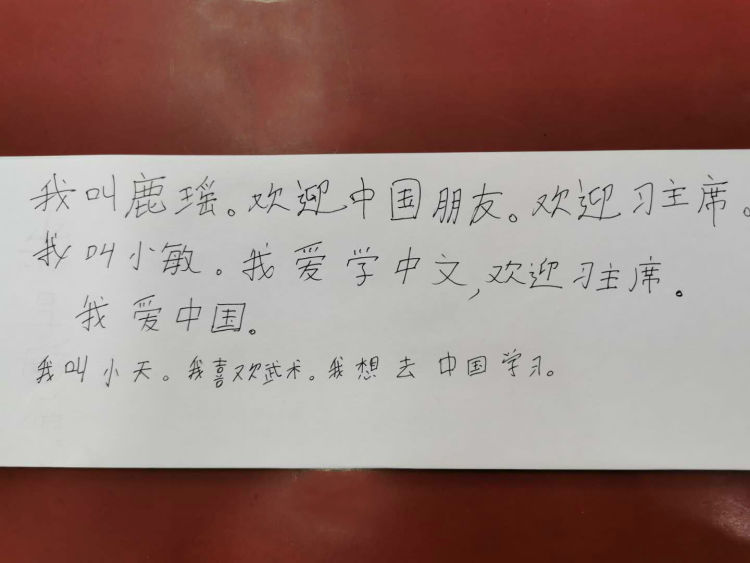 祁燕的學生們用中文寫下期待。(新華社記者 王申 攝)
