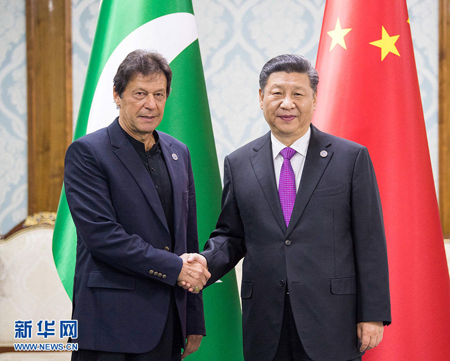 6月14日,國家主席習(xí)近平在比什凱克會(huì)見巴基斯坦總理伊姆蘭·汗。 新華社記者 李學(xué)仁 攝