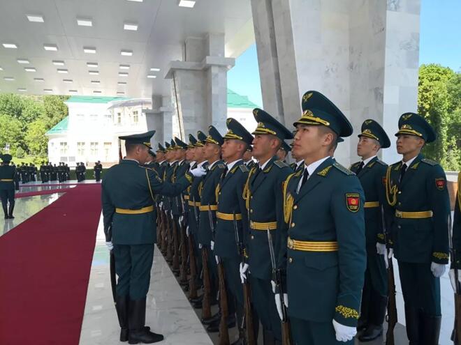 13日,熱恩別科夫總統(tǒng)在阿拉爾恰國(guó)賓館會(huì)議中心前廣場(chǎng)為習(xí)近平主席準(zhǔn)備了一場(chǎng)隆重歡迎儀式。