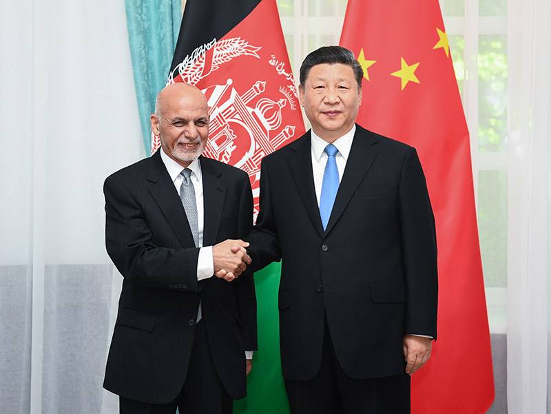 6月13日,國(guó)家主席習(xí)近平在比什凱克會(huì)見阿富汗總統(tǒng)加尼。新華社記者 謝環(huán)馳 攝