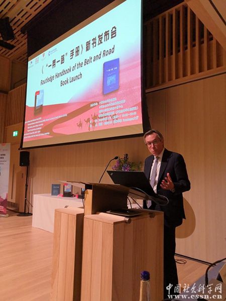 趙劍英首先對《“一帶一路”手冊》英文版的出版發(fā)行表示祝賀,作為《“一帶一路”手冊》中文版的發(fā)起者和出版方,他介紹,由中國社會科學(xué)出版社和英國羅得里奇出版社共同策劃的《“一帶一路”手冊》是全球首部以“一帶一路”倡議為主要內(nèi)容的百科讀本。這部手冊在第二屆一帶一路國際合作高峰論壇現(xiàn)場展示中獲得熱烈反響。內(nèi)容涉及“一帶一路”倡議的歷史傳承、產(chǎn)生與框架、“五路”、“五通”、六大經(jīng)濟(jì)走廊、中國特色大國外交理念、國際上相關(guān)行動計(jì)劃等11個主要部分,涵蓋近年來與“一帶一路”有關(guān)的117個詞條。這部手冊全面、完整、系統(tǒng)地展現(xiàn)“一帶一路”倡議本身及與之有關(guān)的概念和領(lǐng)域,是迄今為止一帶一路理論和實(shí)踐初步成果的階段性匯總。為促進(jìn)國際社會深刻理解一帶一路偉大戰(zhàn)略構(gòu)想提供了學(xué)術(shù)引導(dǎo)價(jià)值。探索一帶一路的規(guī)律,建立規(guī)范型理論框架和恰逢其時(shí),英文版的出版必然會為一帶一路匯聚廣泛的國際共識,為構(gòu)建人類命運(yùn)共同體添磚加瓦。據(jù)趙劍英社長介紹,社科出版社在一帶一路研究英文譯介出版發(fā)行的基礎(chǔ)上,未來還將增進(jìn)西語、葡語、阿拉伯語、俄語等一帶一路沿線語種譯介出版,為一帶一路行穩(wěn)致遠(yuǎn)提供學(xué)理支撐。