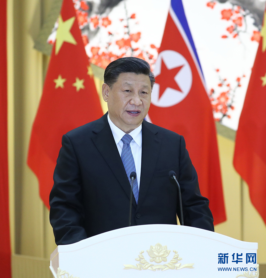 習(xí)近平在致辭中指出,回顧70年中朝關(guān)系史,雙方老一輩領(lǐng)導(dǎo)人親手締造了中朝傳統(tǒng)友誼,為我們留下了共同寶貴財(cái)富。盡管滄海桑田、風(fēng)云變幻,中朝友誼歷久彌堅(jiān)。剛才,我同金正恩委員長(zhǎng)進(jìn)行了富有成果的會(huì)談,共同擘畫中朝關(guān)系美好未來,達(dá)成一系列重要共識(shí)。我們一致認(rèn)為,中朝雙方要堅(jiān)定不移傳承弘揚(yáng)傳統(tǒng)友誼,續(xù)寫時(shí)代新篇章。我們一致認(rèn)為,政治解決半島問題是人心所向、大勢(shì)所趨,要繼續(xù)高舉和平對(duì)話旗幟,為實(shí)現(xiàn)地區(qū)乃至世界和平、穩(wěn)定、繁榮作出新的更大貢獻(xiàn)。