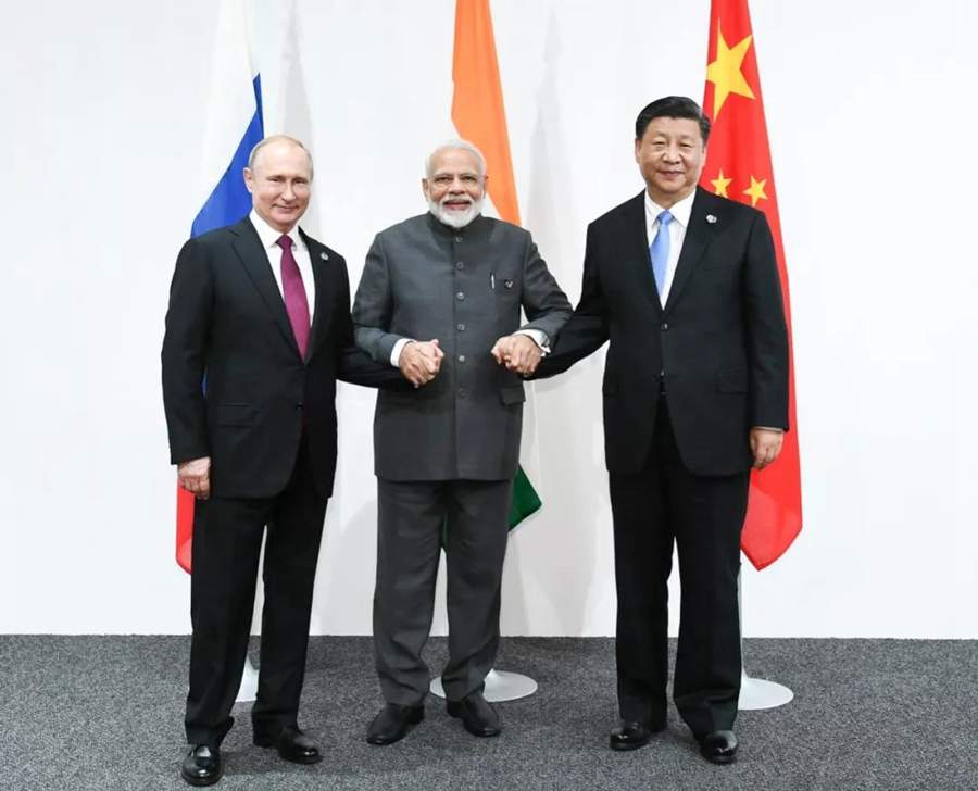↑6月28日,習主席在大阪出席中俄印領(lǐng)導人會晤,同俄羅斯總統(tǒng)普京、印度總理莫迪就當前國際形勢、重大國際和地區(qū)問題、三方合作深入交換意見。新華社記者謝環(huán)馳攝