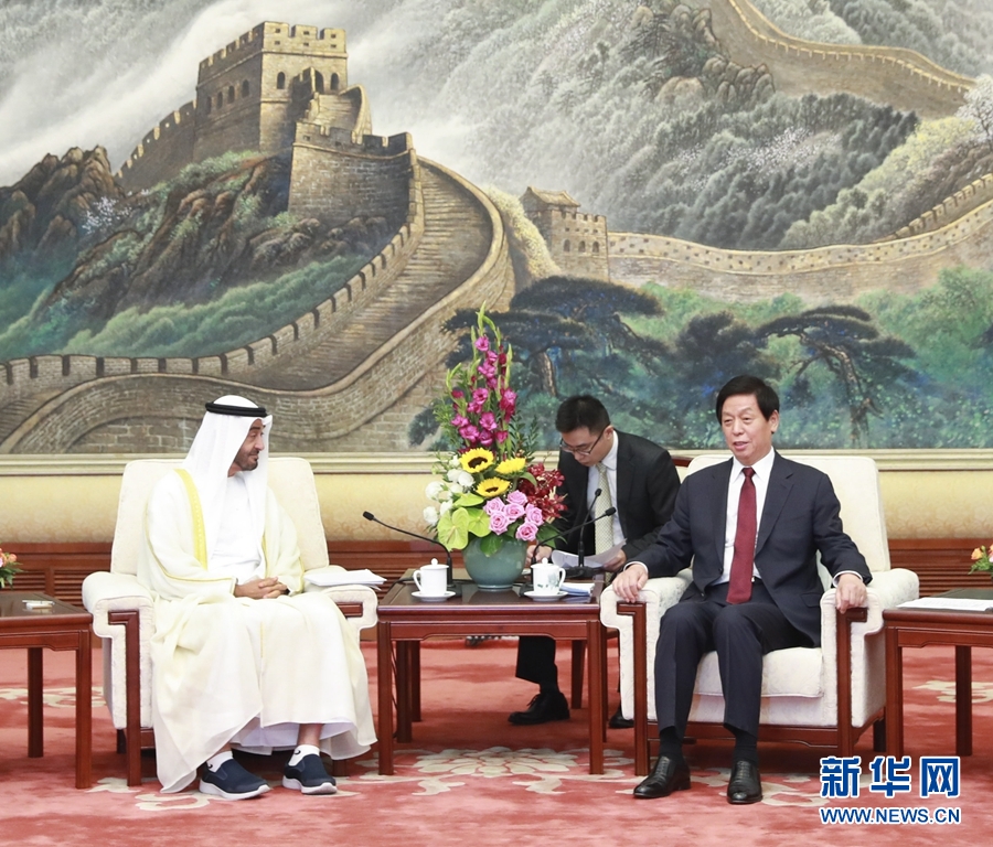7月22日,全國人大常委會(huì)委員長栗戰(zhàn)書在北京人民大會(huì)堂會(huì)見阿聯(lián)酋阿布扎比王儲(chǔ)穆罕默德。新華社記者 龐興雷 攝
