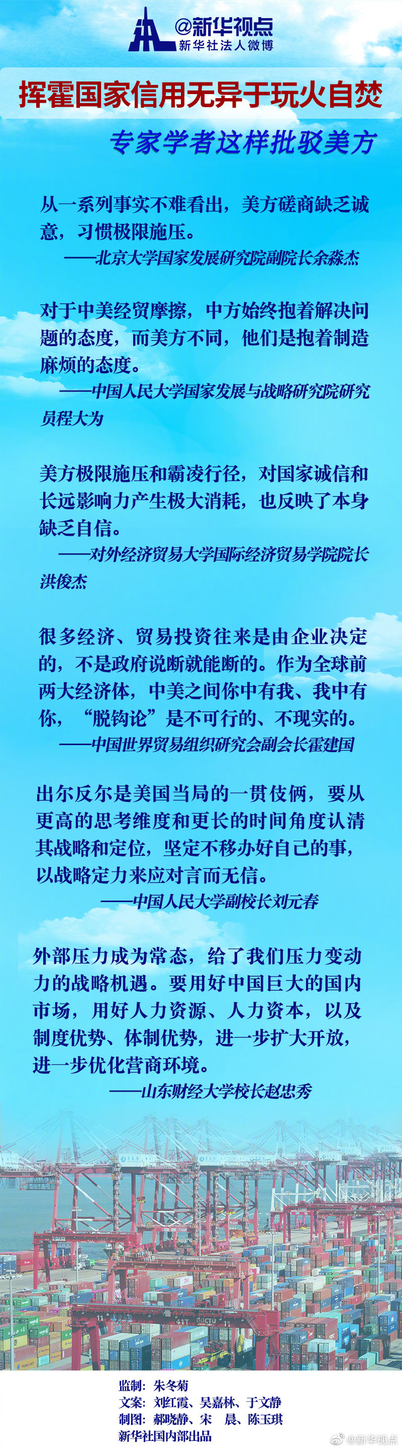 中國(guó)人民大學(xué)副校長(zhǎng)劉元春認(rèn)為,出爾反爾是美國(guó)當(dāng)局的一貫伎倆,要從更高的思考維度和更長(zhǎng)的時(shí)間角度認(rèn)清其戰(zhàn)略和定位,堅(jiān)定不移辦好自己的事,以戰(zhàn)略定力來應(yīng)對(duì)言而無信。