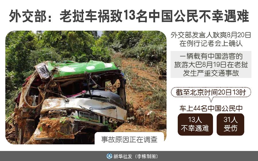 新華社北京8月20日電(記者 鄭明達)外交部發(fā)言人耿爽20日在例行記者會上確認,一輛載有中國游客的旅游大巴19日在老撾發(fā)生嚴重交通事故,截至北京時間20日13時,車上44名中國公民中,13人不幸遇難,31人受傷。
