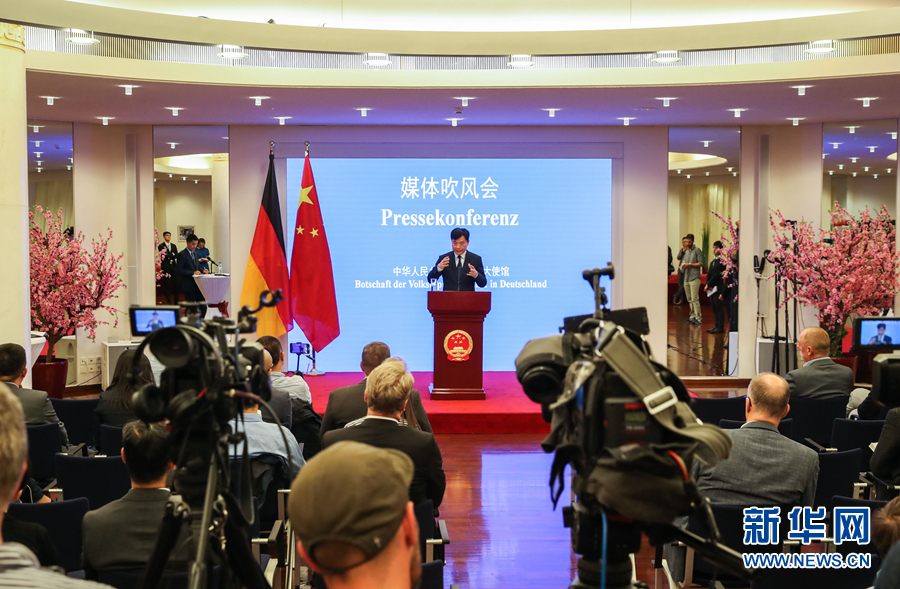 9月11日,在德國首都柏林的中國駐德國大使館,中國駐德國大使吳懇出席中外記者會。中國駐德國大使吳懇11日譴責(zé)一些德國政客把香港分裂分子黃之鋒奉為座上賓,奉勸德國某些政客停止干涉香港事務(wù)。 新華社記者單宇琦攝