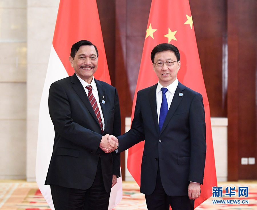9月20日,中共中央政治局常委、國(guó)務(wù)院副總理韓正在廣西南寧會(huì)見(jiàn)出席第十六屆中國(guó)—東盟博覽會(huì)和中國(guó)—東盟商務(wù)與投資峰會(huì)的印尼總統(tǒng)特使、海洋統(tǒng)籌部長(zhǎng)盧胡特。 新華社記者 申宏 攝