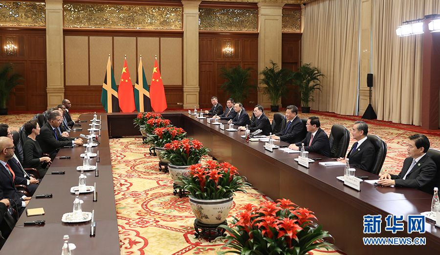習(xí)近平強(qiáng)調(diào),中牙雙方要保持高層交往,加強(qiáng)治國理政經(jīng)驗(yàn)交流,加強(qiáng)發(fā)展戰(zhàn)略對接,以共建“一帶一路”為契機(jī),推動合作增速提質(zhì),密切人文交流。中方支持中國企業(yè)赴牙買加投資,歡迎更多牙買加特色優(yōu)勢產(chǎn)品進(jìn)入中國。中方愿同牙方一道,致力于推動中國同加勒比國家關(guān)系發(fā)展,并加強(qiáng)在國際和多邊領(lǐng)域合作,共同維護(hù)多邊主義和多邊貿(mào)易體制,捍衛(wèi)發(fā)展中國家共同利益。