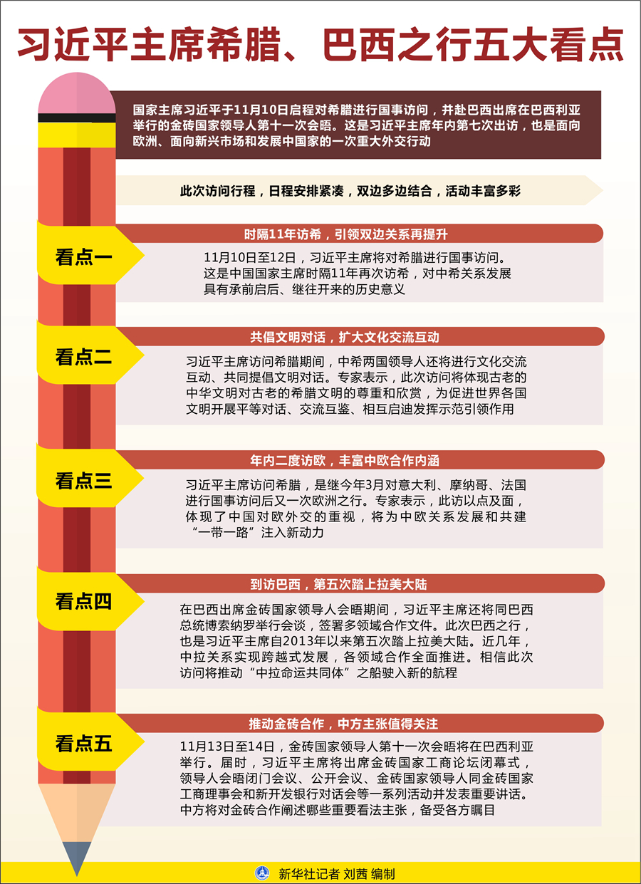 新華社北京11月9日電 題:習(xí)近平主席希臘、巴西之行五大看點(diǎn)