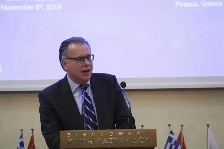 拉斯卡瑞德斯基金會(huì)主席帕諾斯·拉斯卡瑞德斯在研討會(huì)上致辭。中國(guó)日?qǐng)?bào)記者 匡林華 攝