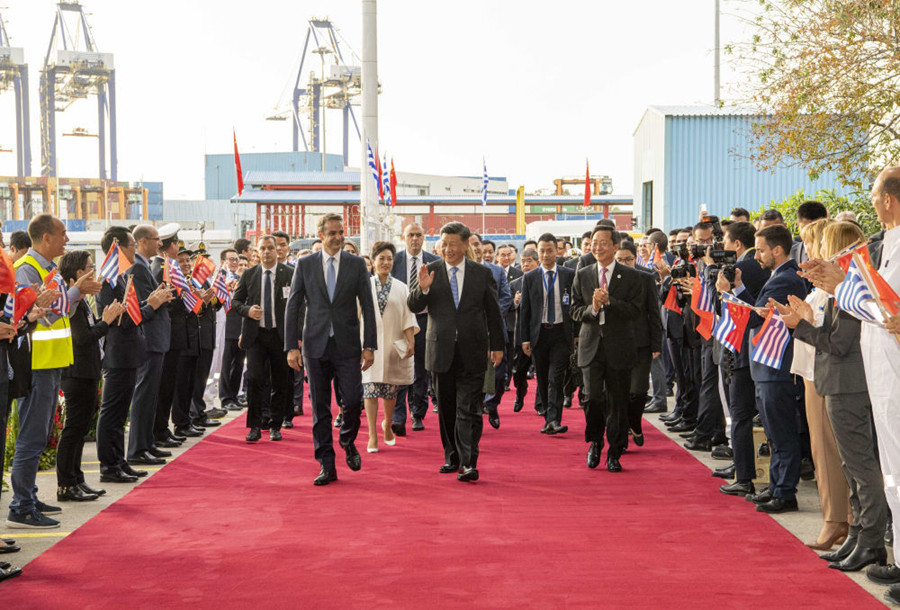 新華社雅典11月12日電當(dāng)?shù)貢r(shí)間11月11日,習(xí)近平主席繼續(xù)在希臘的訪問(wèn)行程——上午,分別同希臘總統(tǒng)帕夫洛普洛斯、總理米佐塔基斯舉行會(huì)談;下午,不辭辛勞來(lái)到雅典西南約10公里處的中遠(yuǎn)海運(yùn)比雷埃夫斯港項(xiàng)目參觀?! ?/p>