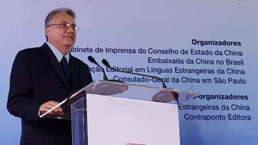 羅尼·林斯在圣保羅《習近平談治國理政》第一卷、第二卷葡文巴西版首發(fā)式上致辭。