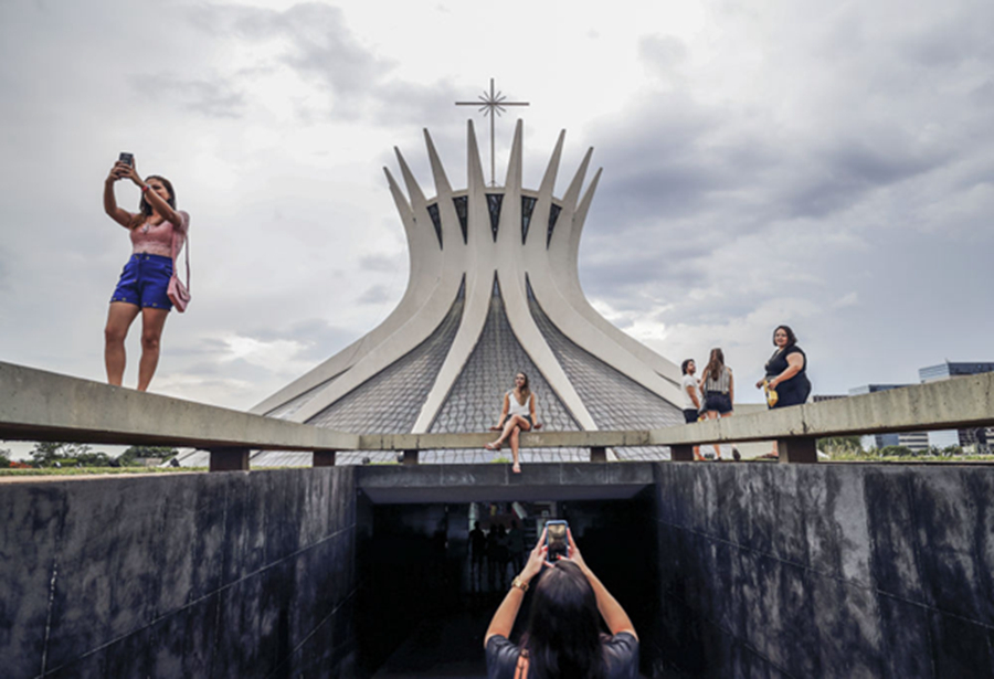 臨近“機(jī)尾”是高達(dá)224米的巴西利亞電視塔。登塔望遠(yuǎn),巴西利亞主城區(qū)井然有序的對稱格局盡收眼底,一望無垠的藍(lán)天和變幻莫測的白云也是這里一道靚麗的風(fēng)景線。