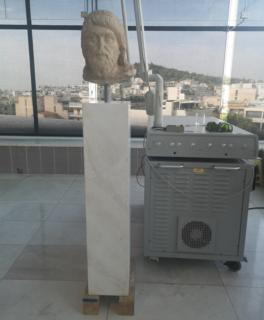 希臘方面向習主席介紹了激光文物修護技術,圖為相關設備。新華社記者郝薇薇攝