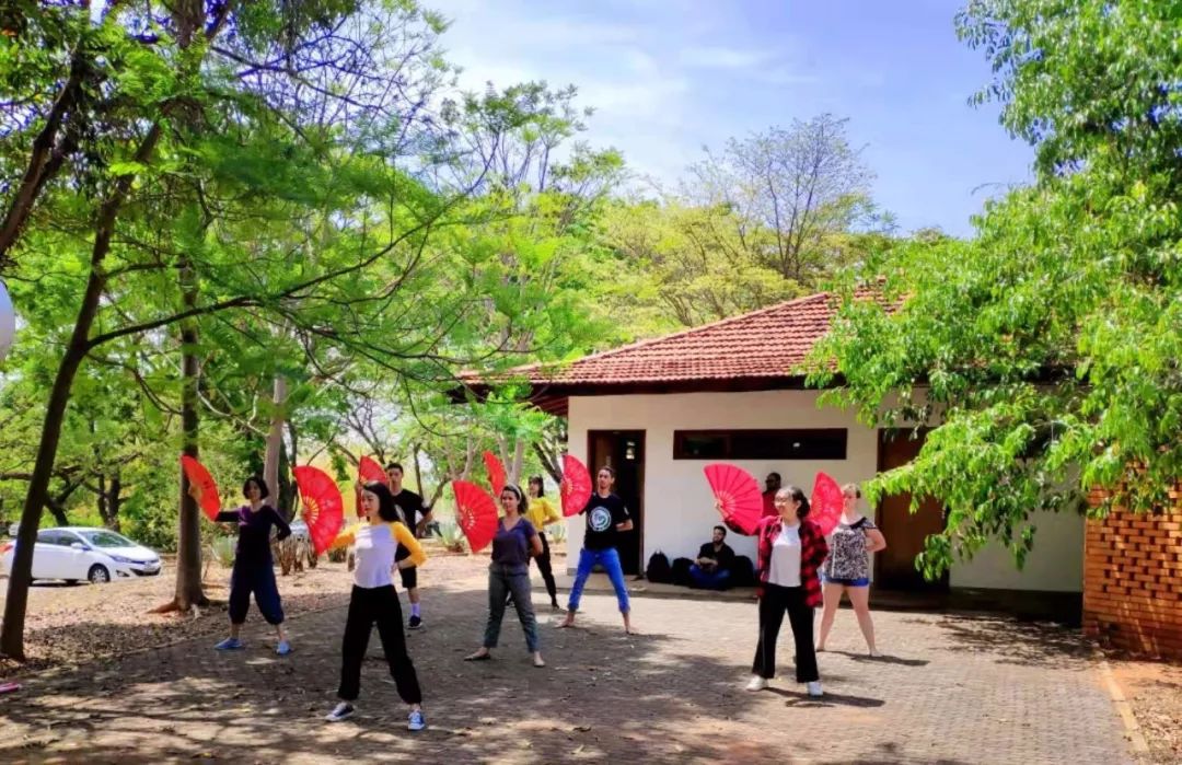 ▲巴西學(xué)生在巴西利亞大學(xué)孔子學(xué)院體驗(yàn)中國扇子舞。(巴西利亞大學(xué)孔子學(xué)院供圖)