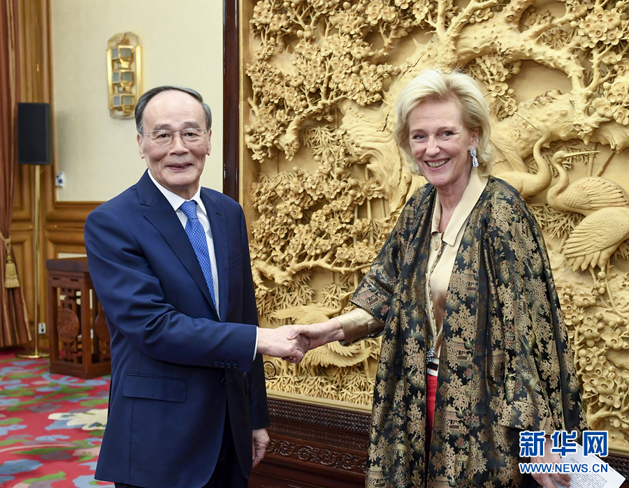 11月18日,國(guó)家副主席王岐山在北京中南海會(huì)見比利時(shí)國(guó)王代表、公主阿斯特里德。 新華社記者 高潔 攝