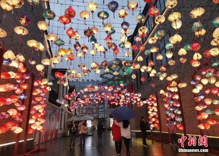 春節(jié)臨近,全國各地街頭張燈結彩年味漸濃。中新社記者 張茵 攝