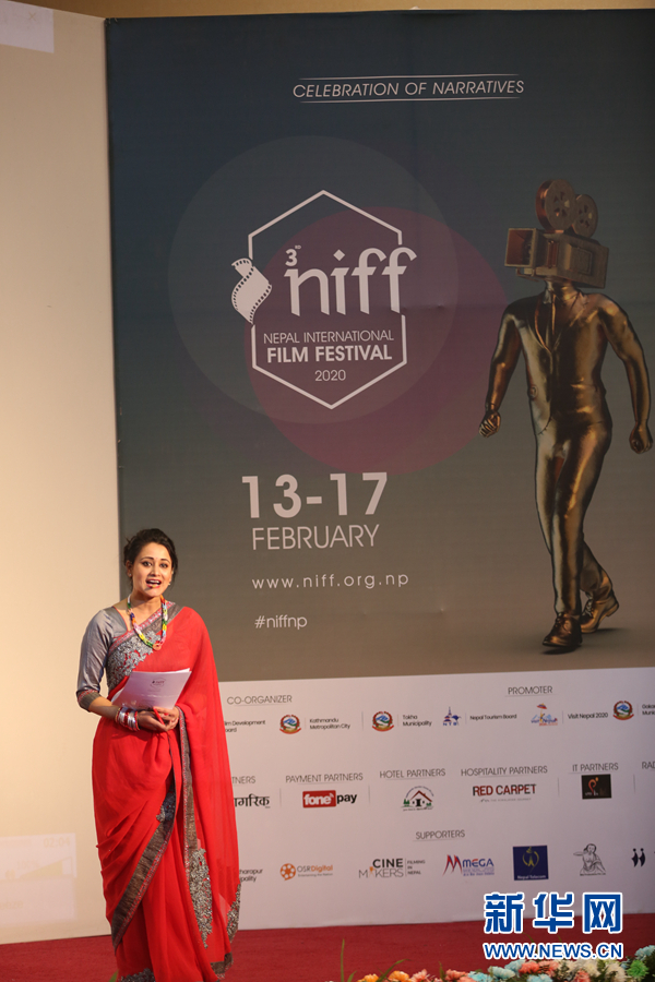 2月17日,尼泊爾加德滿都市政大廳,優(yōu)雅美麗的主持人在第三屆尼泊爾國(guó)際電影節(jié)在加德滿都閉幕儀式上。本屆電影節(jié)2月13日開始,一共有來(lái)自40個(gè)國(guó)家和地區(qū)的80部影片入選,其中中國(guó)和哈薩克斯坦聯(lián)合拍攝的《音樂(lè)家》作為開幕電影,備受關(guān)注。記者 唐薇 攝