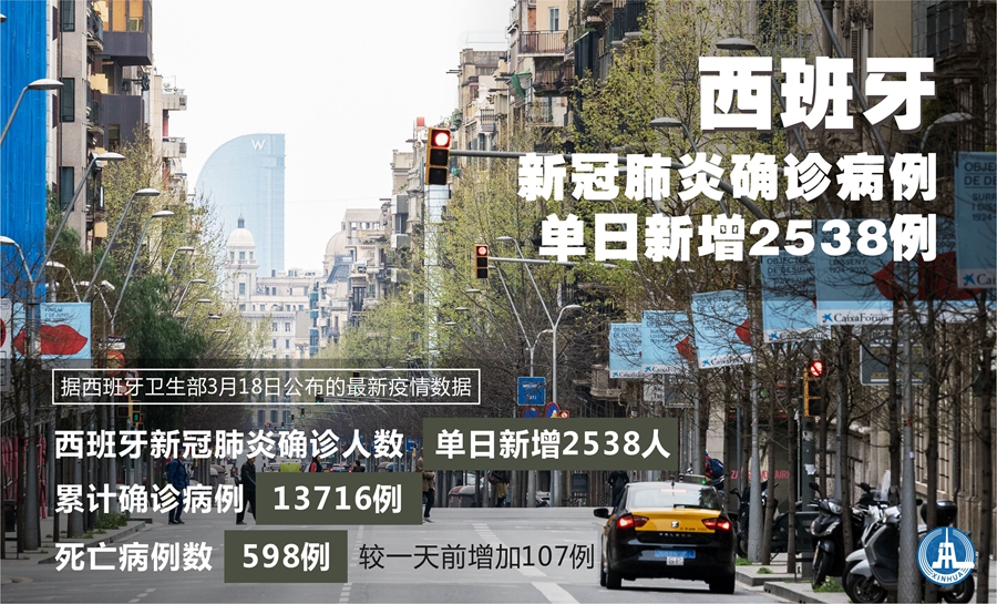 新華社馬德里3月18日電(謝宇智)據(jù)西班牙衛(wèi)生部18日公布的最新疫情數(shù)據(jù),西班牙新冠肺炎確診人數(shù)單日新增2538人,累計確診病例13716例。