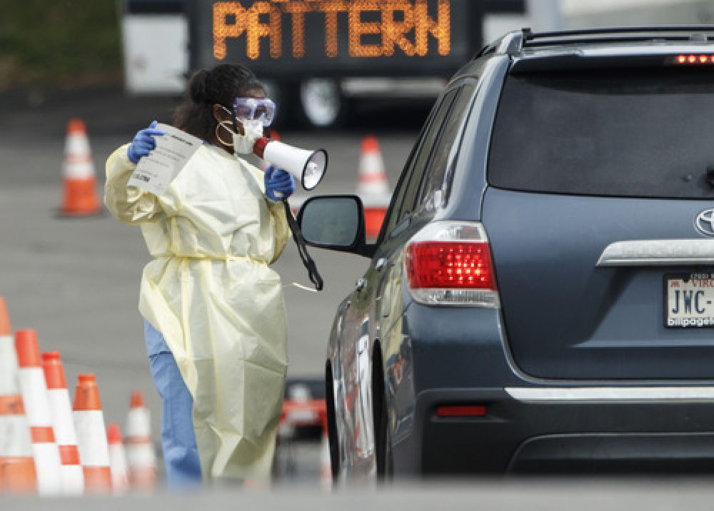 3月19日,在美國弗吉尼亞州阿靈頓,醫(yī)護(hù)人員在一處“免下車”新冠肺炎檢測(cè)點(diǎn)引導(dǎo)車輛。新華社發(fā)(沈霆攝)