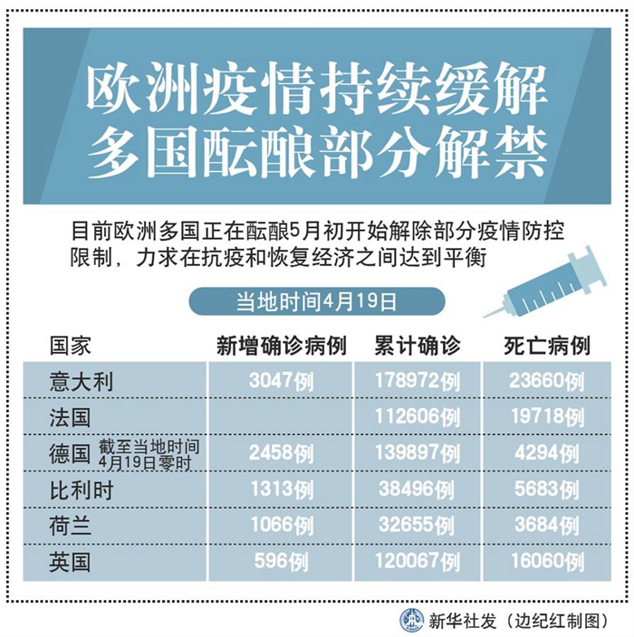 圖表:綜合消息:歐洲疫情持續(xù)緩解 多國醞釀部分解禁 新華社發(fā) 邊紀紅 制圖