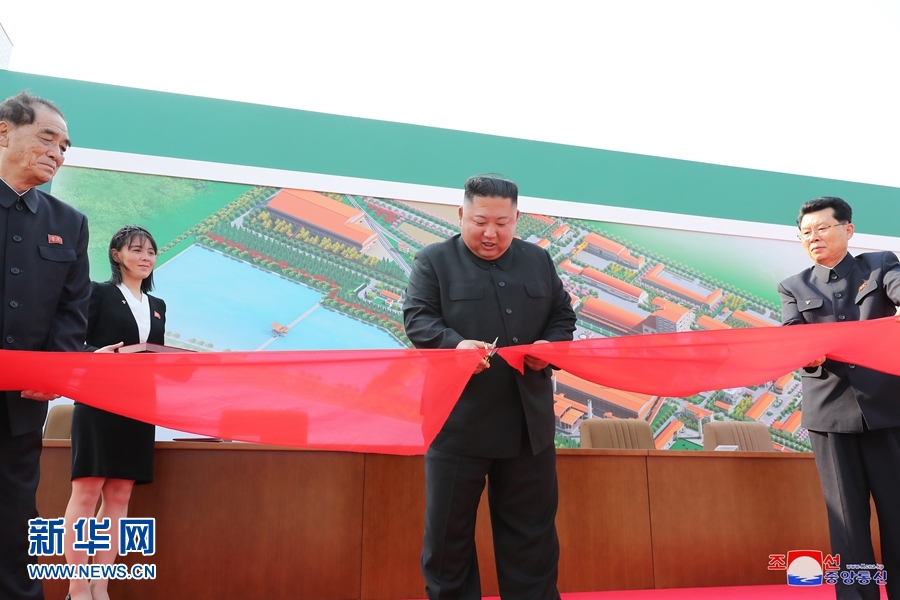 這張朝中社提供的照片顯示,5月1日,朝鮮最高領(lǐng)導(dǎo)人金正恩(中)在順川磷肥生產(chǎn)基地竣工儀式上剪彩。 新華社/朝中社
