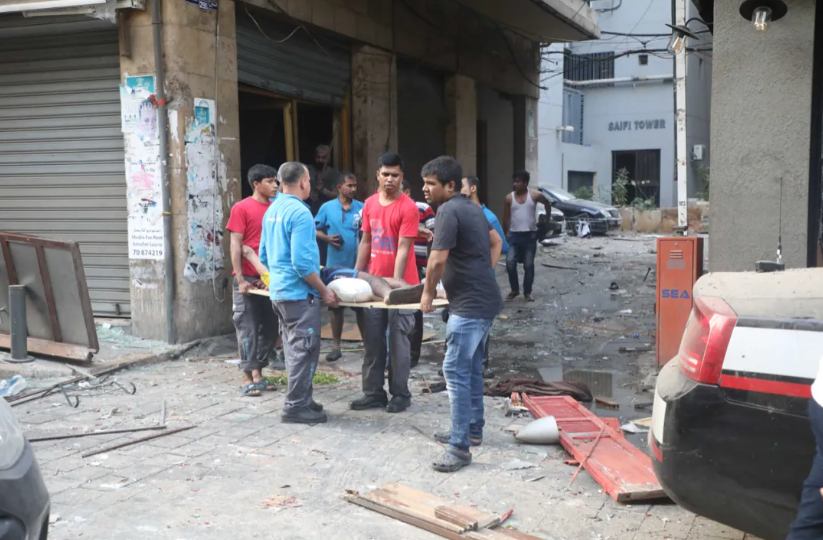 8月4日,在黎巴嫩首都貝魯特,民眾運(yùn)送爆炸傷員。新華社發(fā)(比拉爾·賈維希攝)